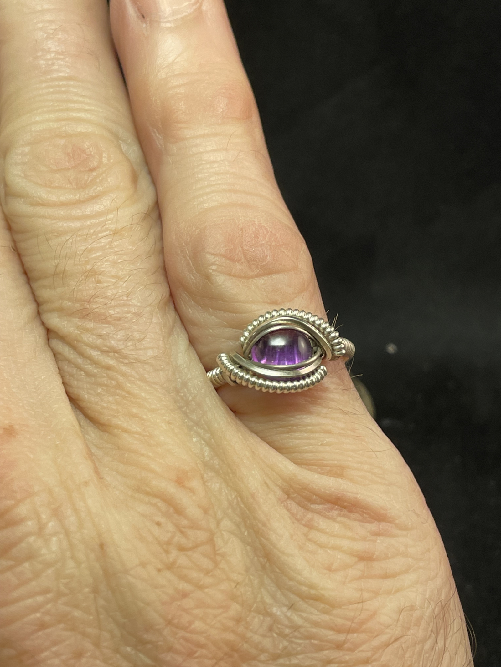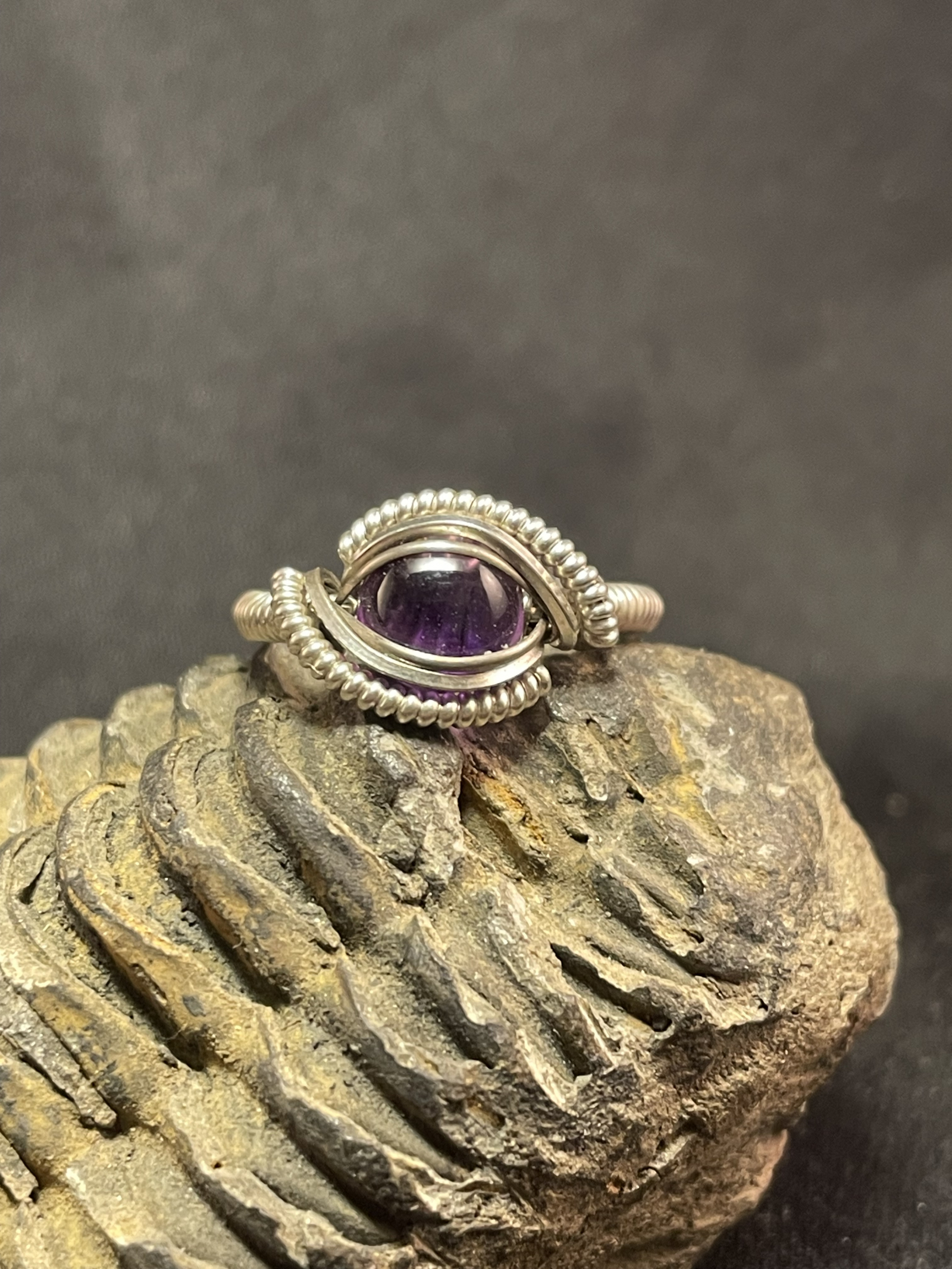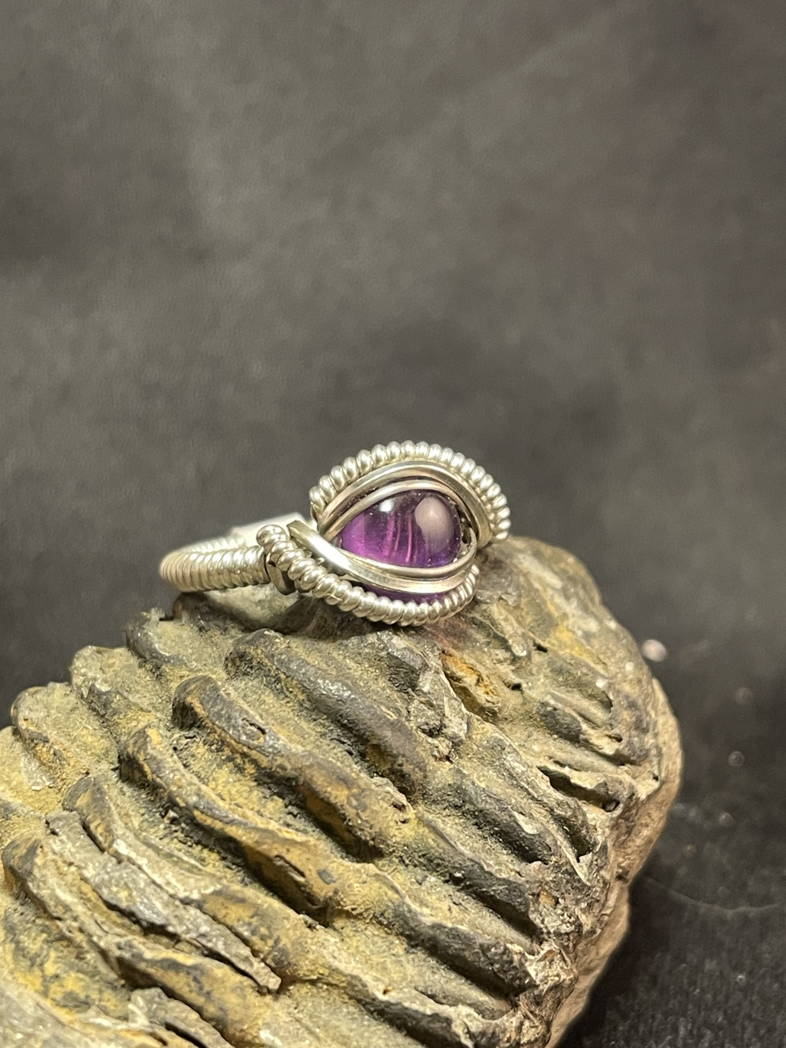 Handcrafted .925 Sterling Silver wire featuring a purple Amethyst cabochon