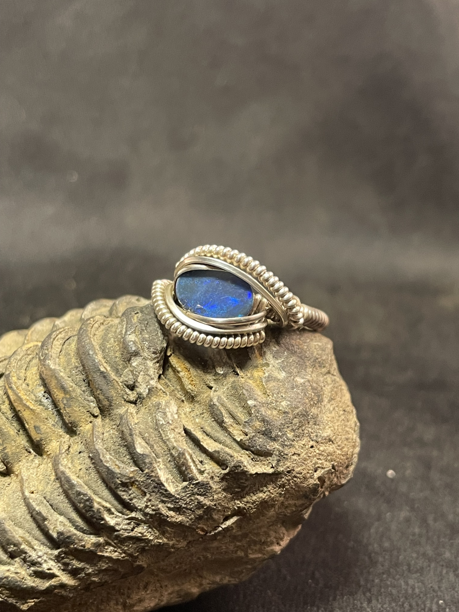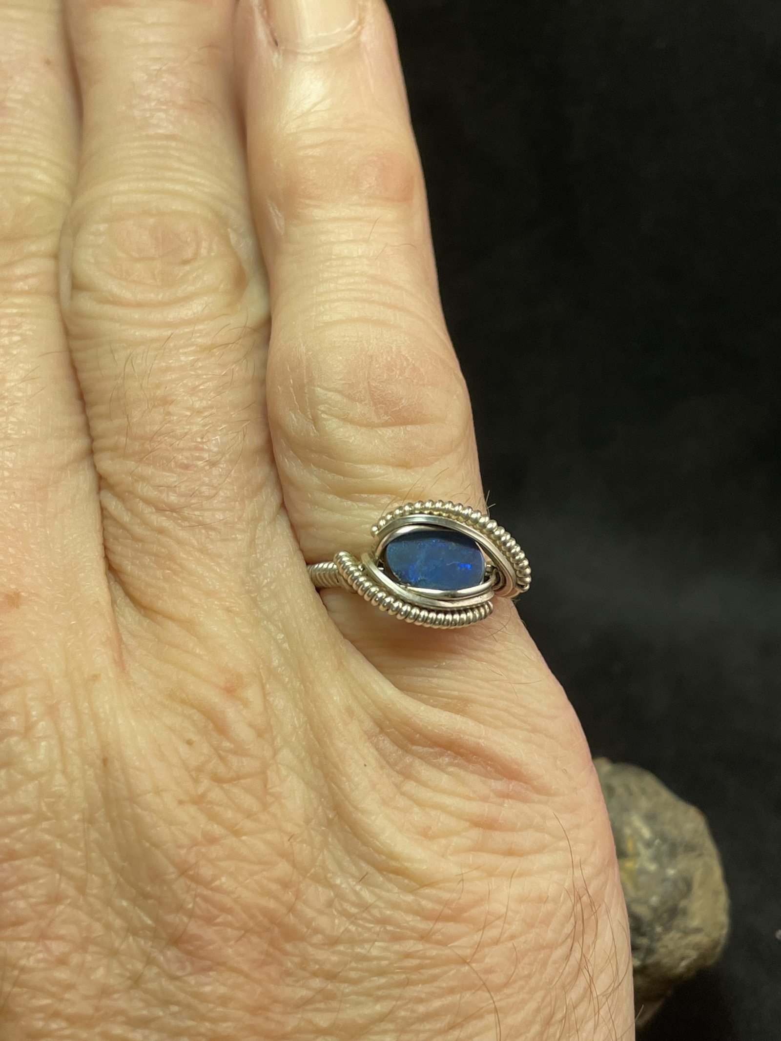 Australian Opal Sterling Silver “mini” Ring Size 6