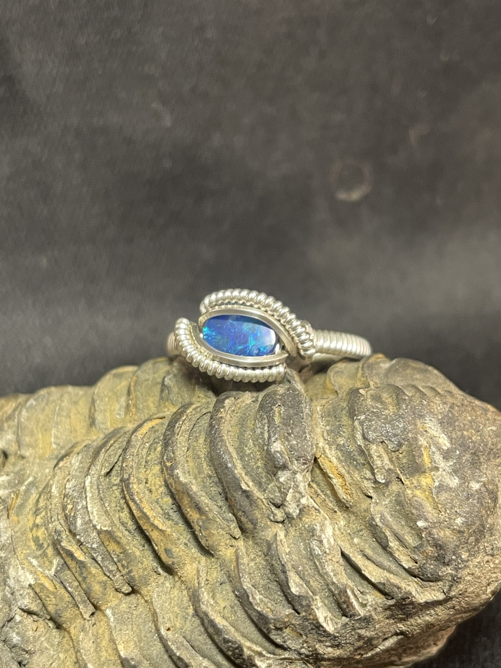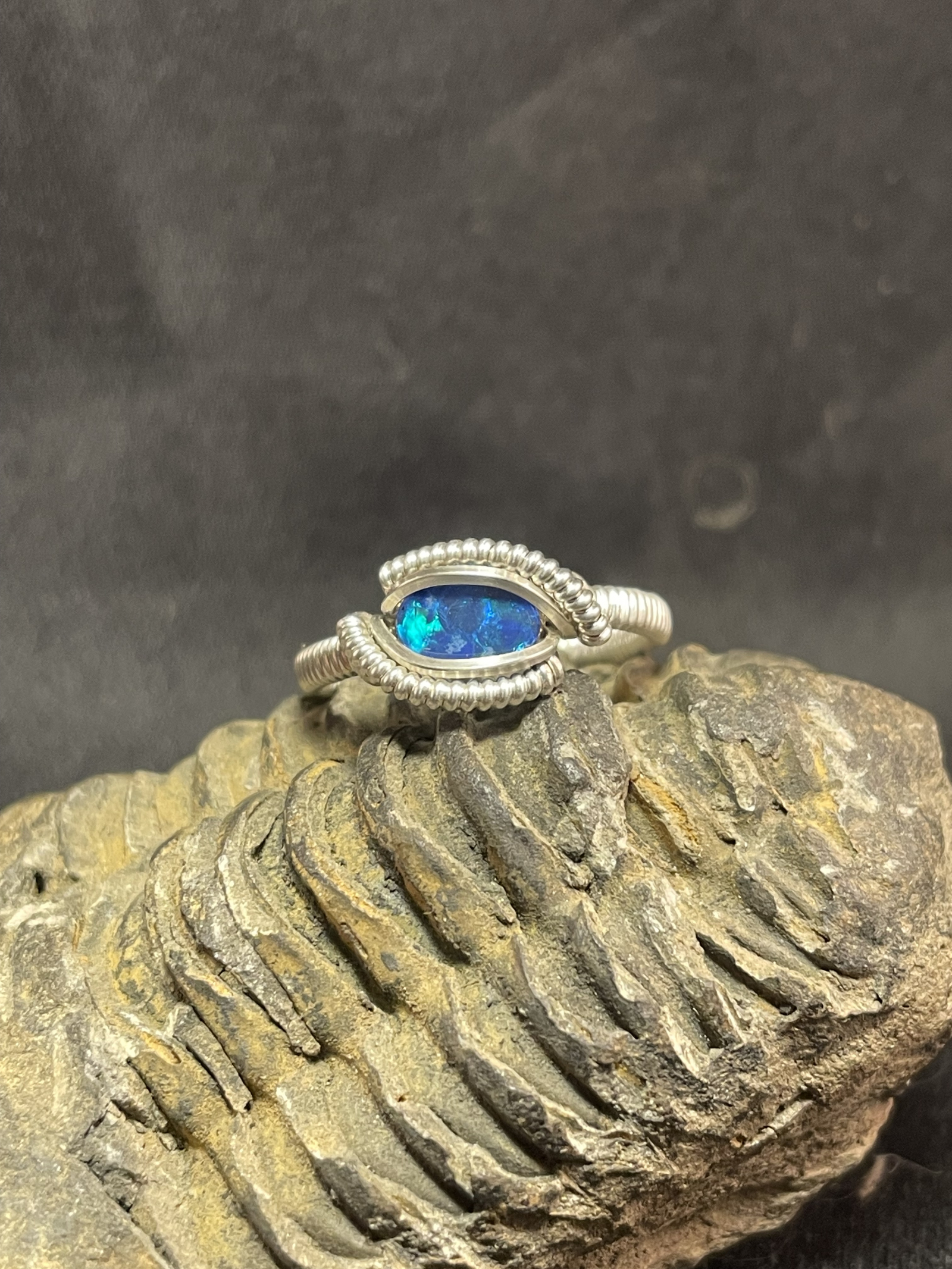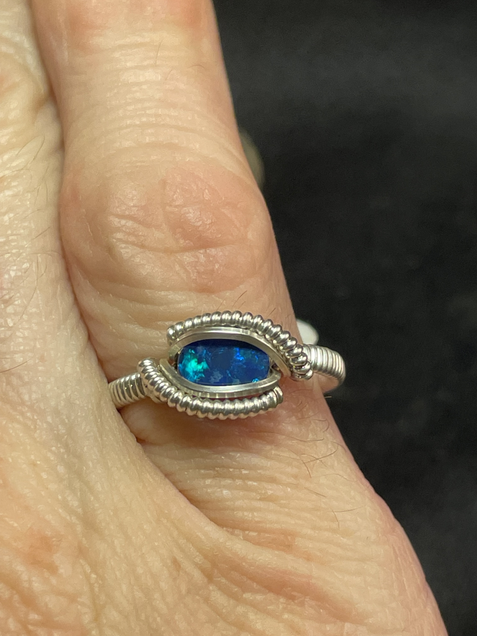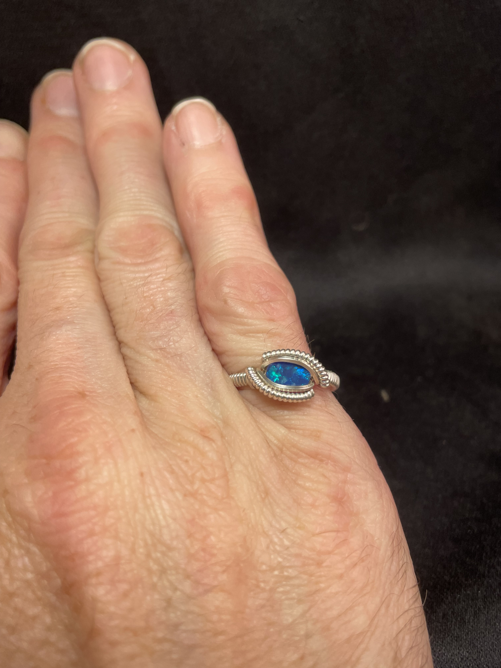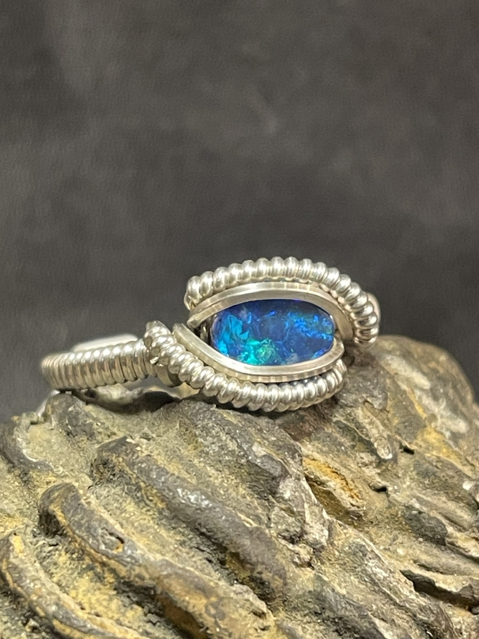 Handcrafted .925 Sterling Silver wire featuring an illustrious Green and blue color change Opal from Australia