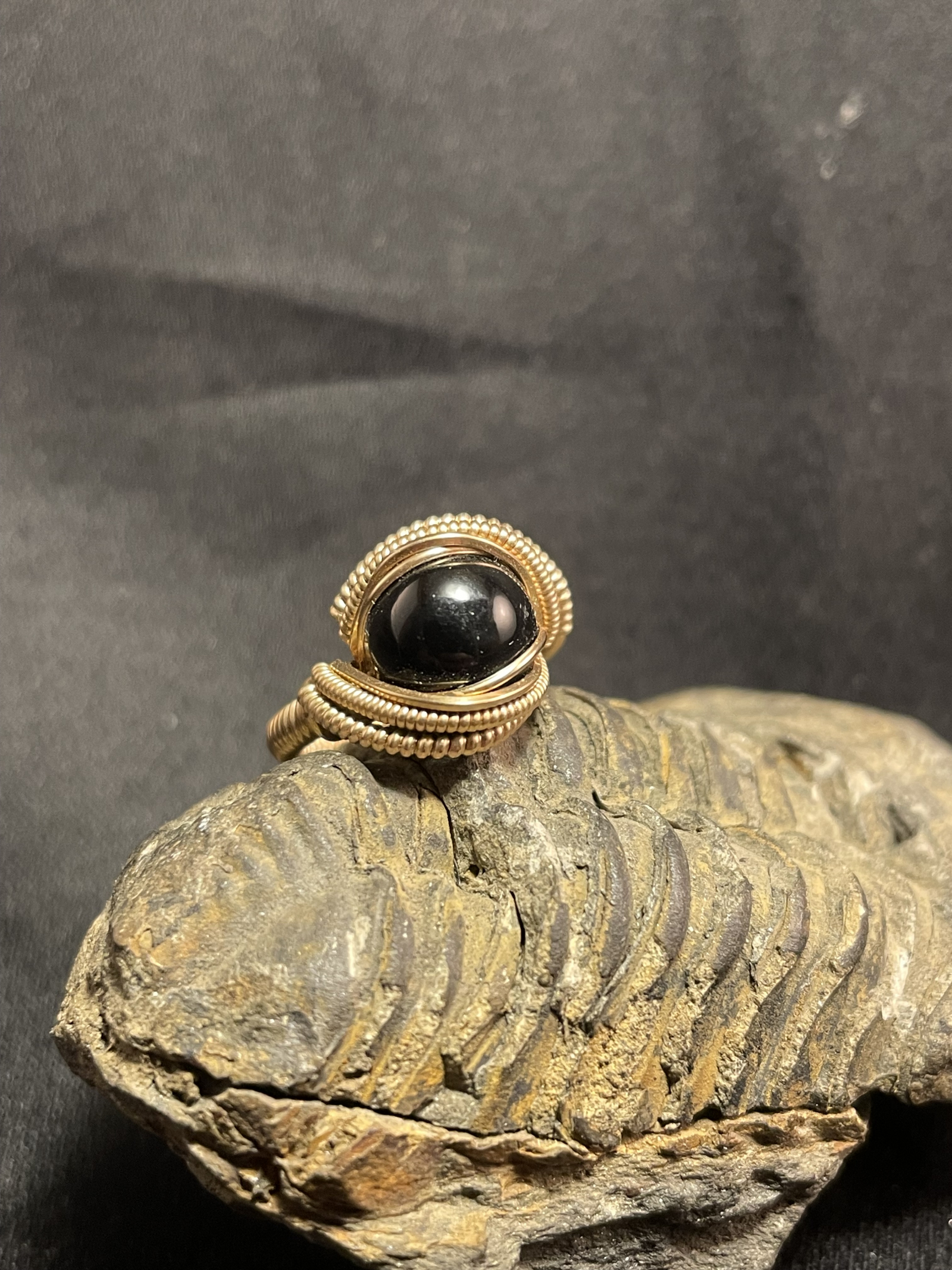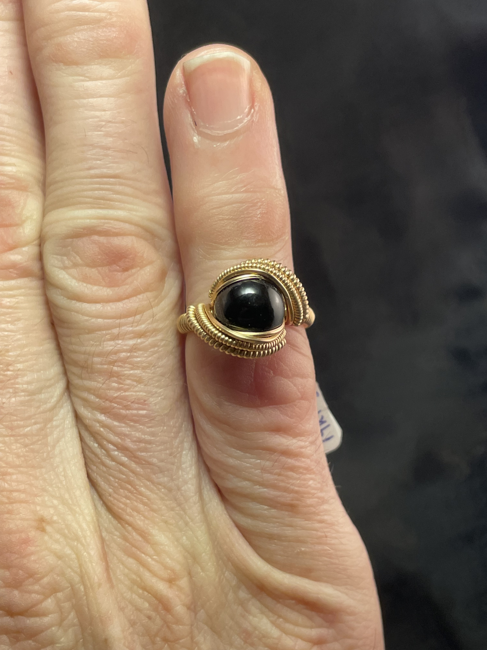 Black Obsidian 14kt Gold “mini” Ring Size 5