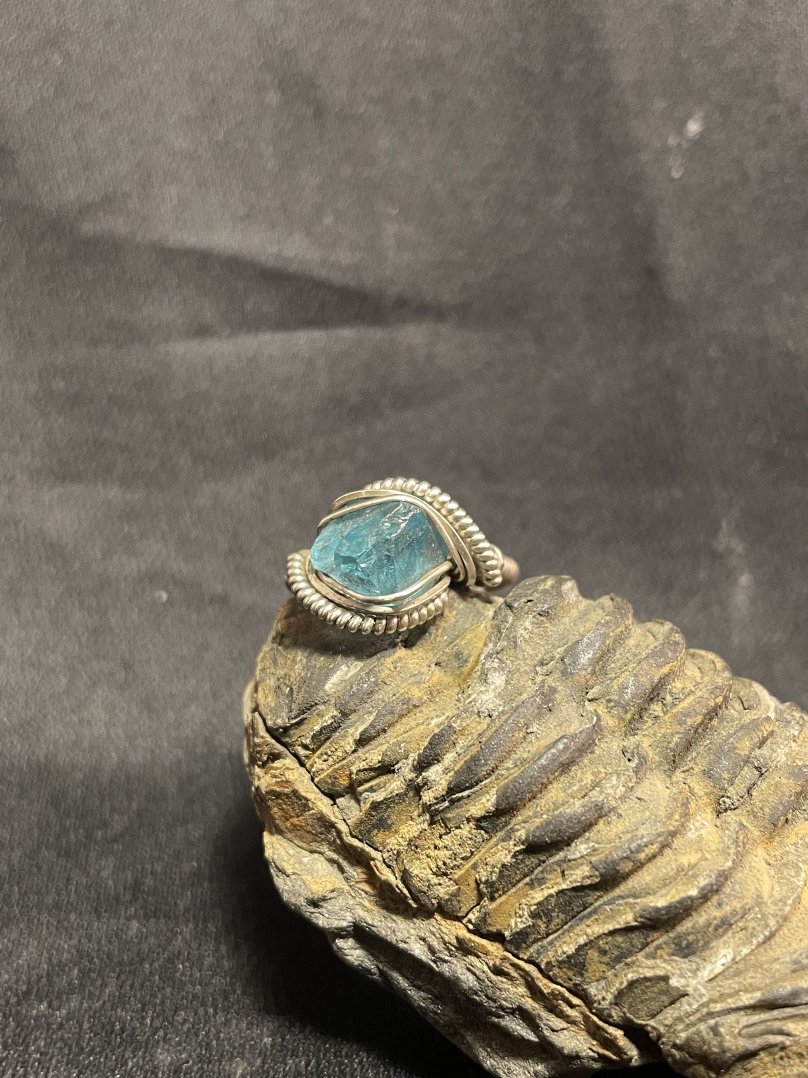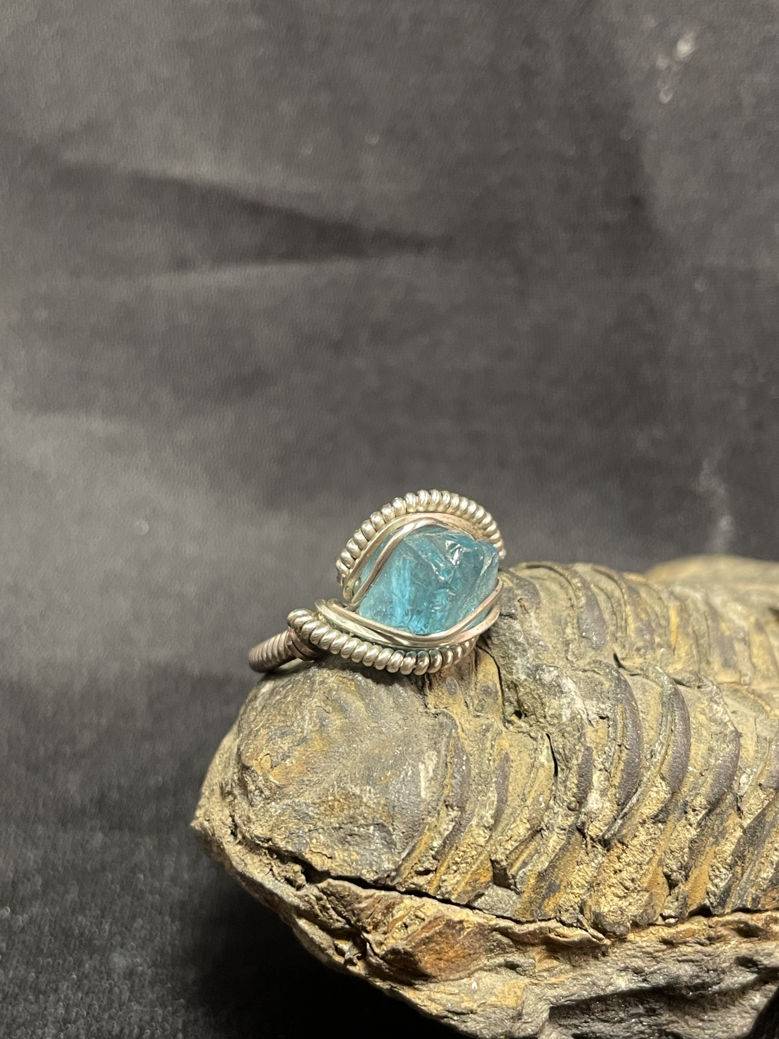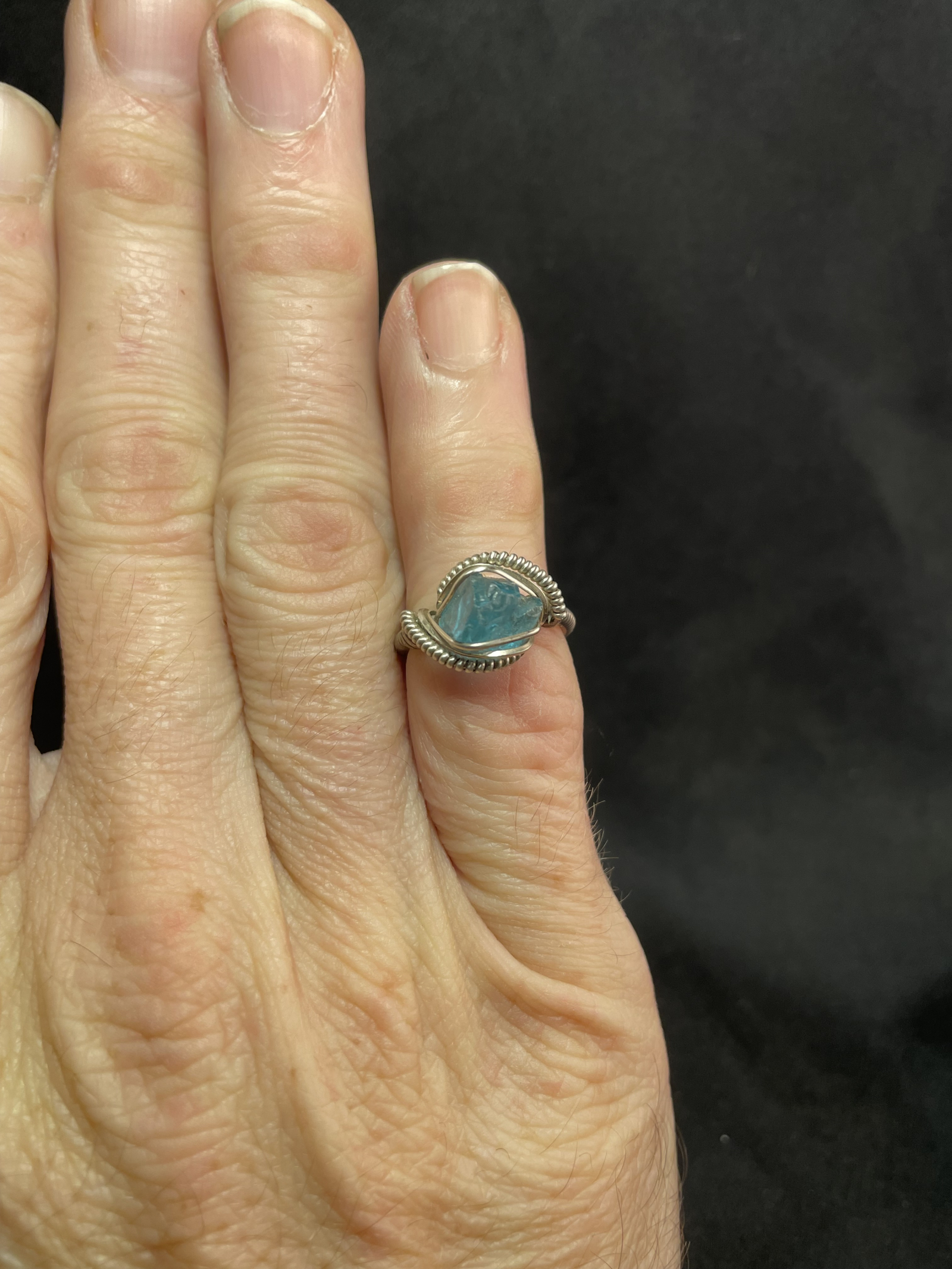 Handcrafted .925 Sterling Silver wire featuring a natural rich light Blue Apatite gemstone