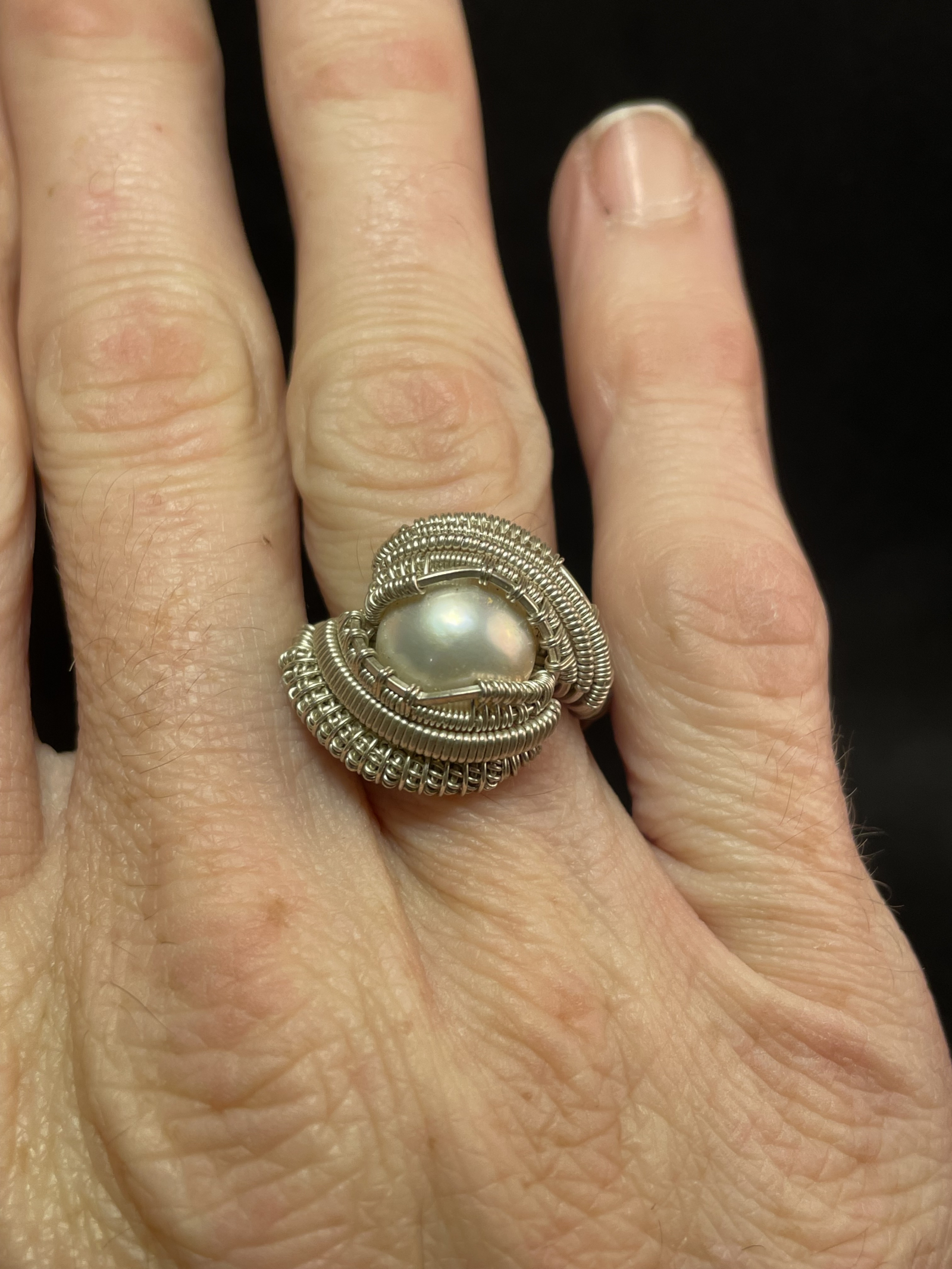 Handcrafted .925 Sterling Silver wire featuring a freshwater pearl