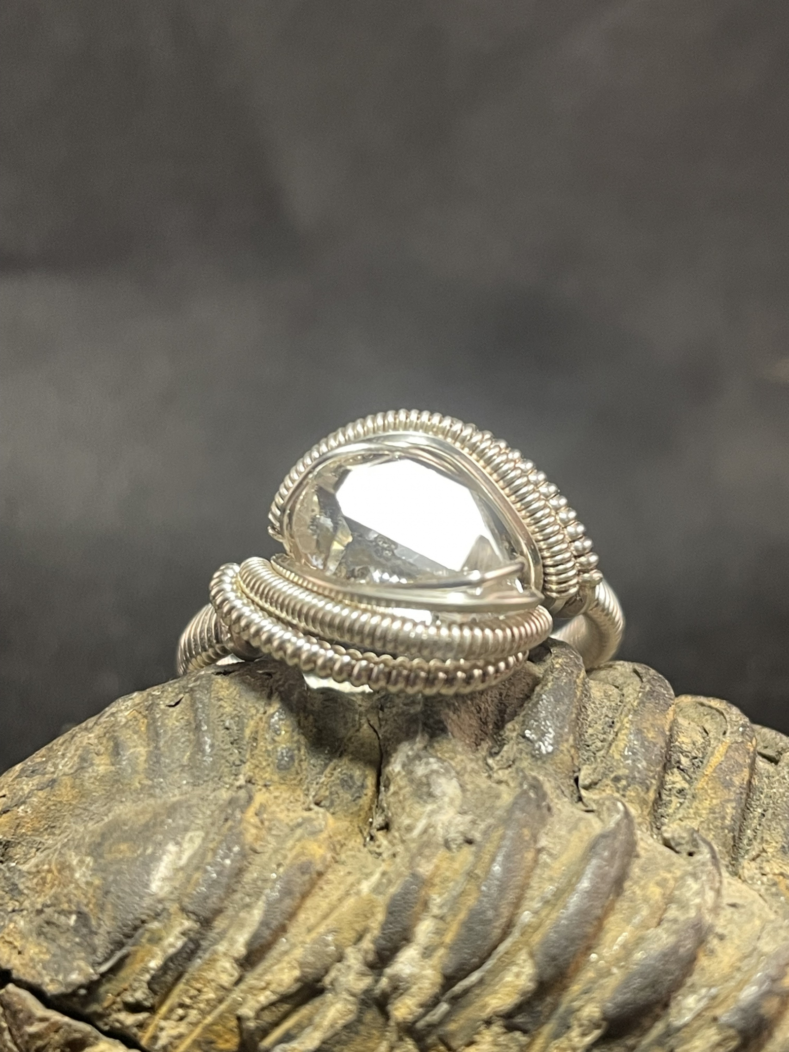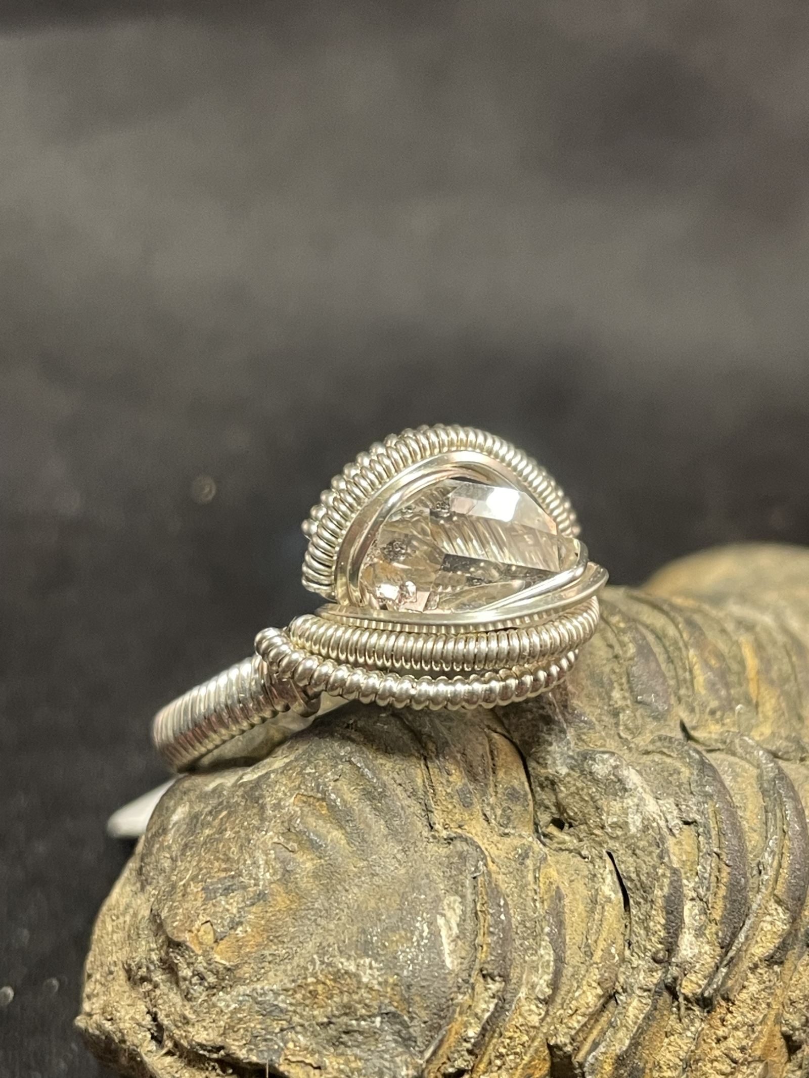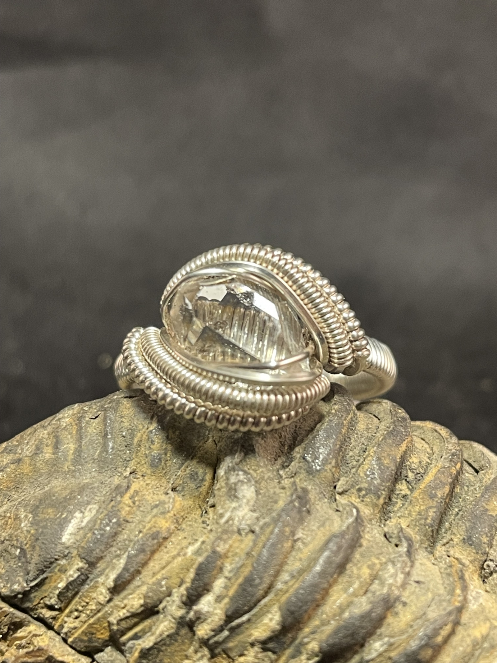 Handcrafted .925 Sterling Silver wire featuring a Crystal clear Terminated Herkimer "diamond" Quartz from Herkimer New York