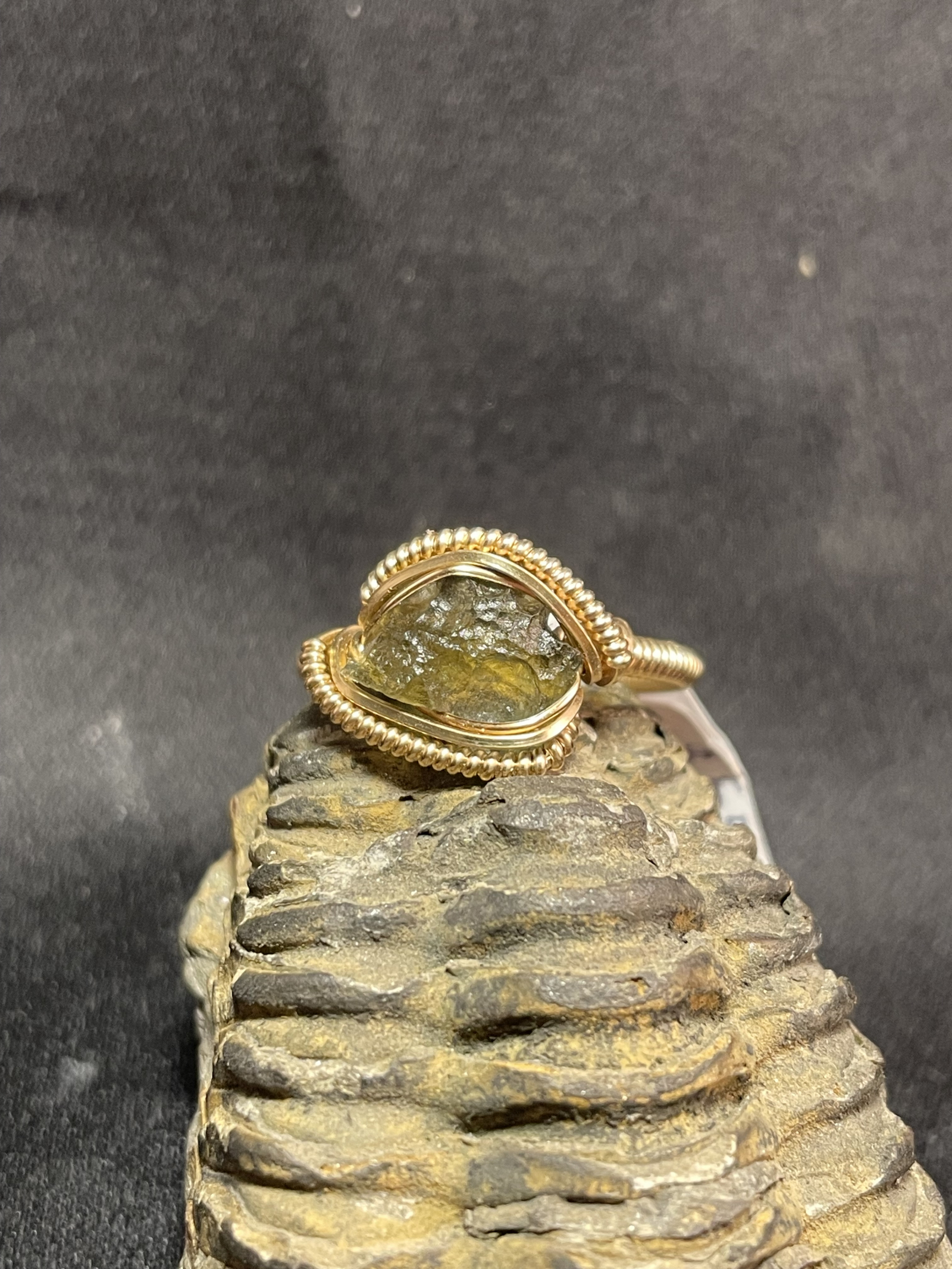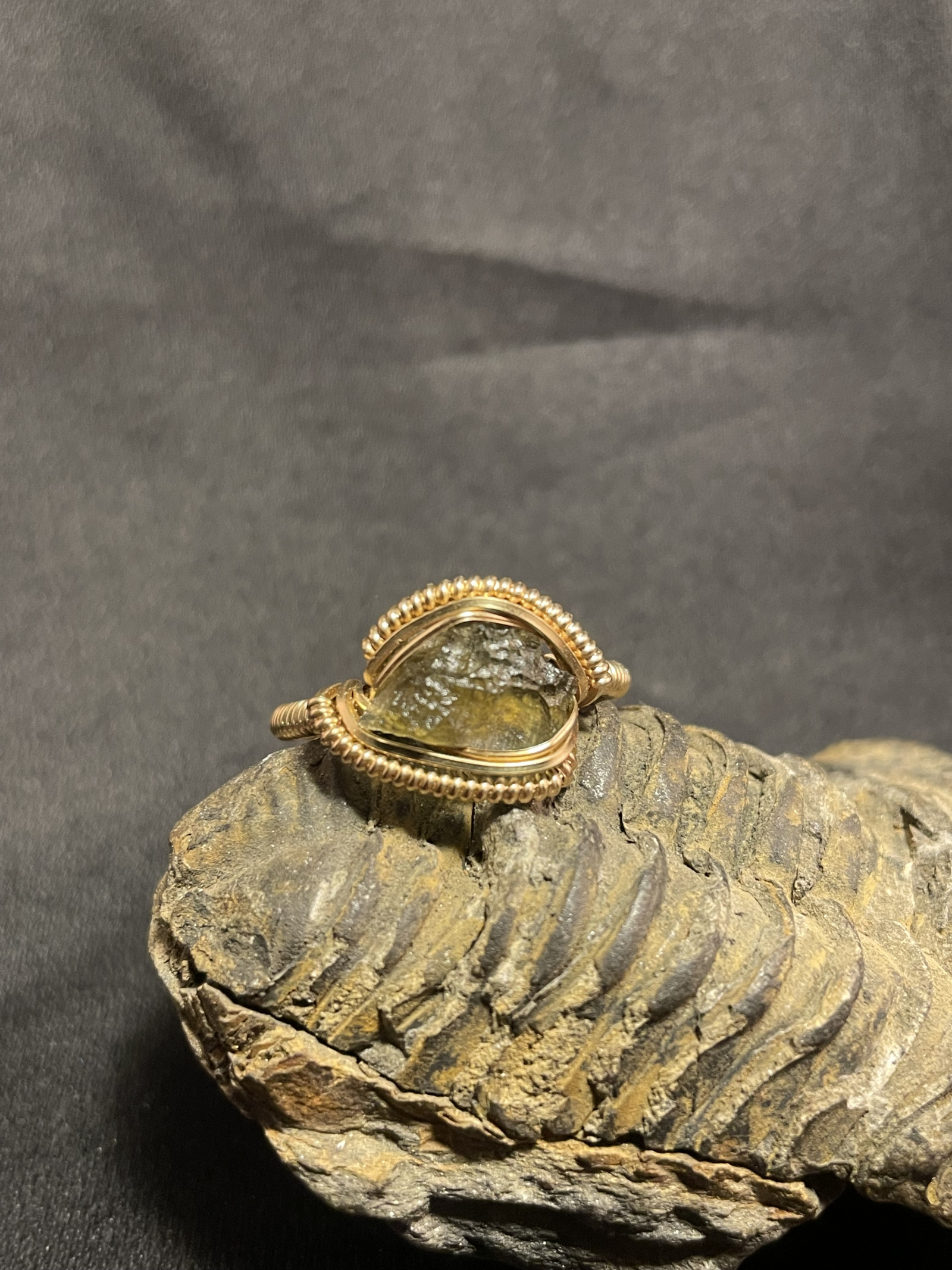 Moldavite 14kt Gold “mini” Ring Size 9.5-9.75