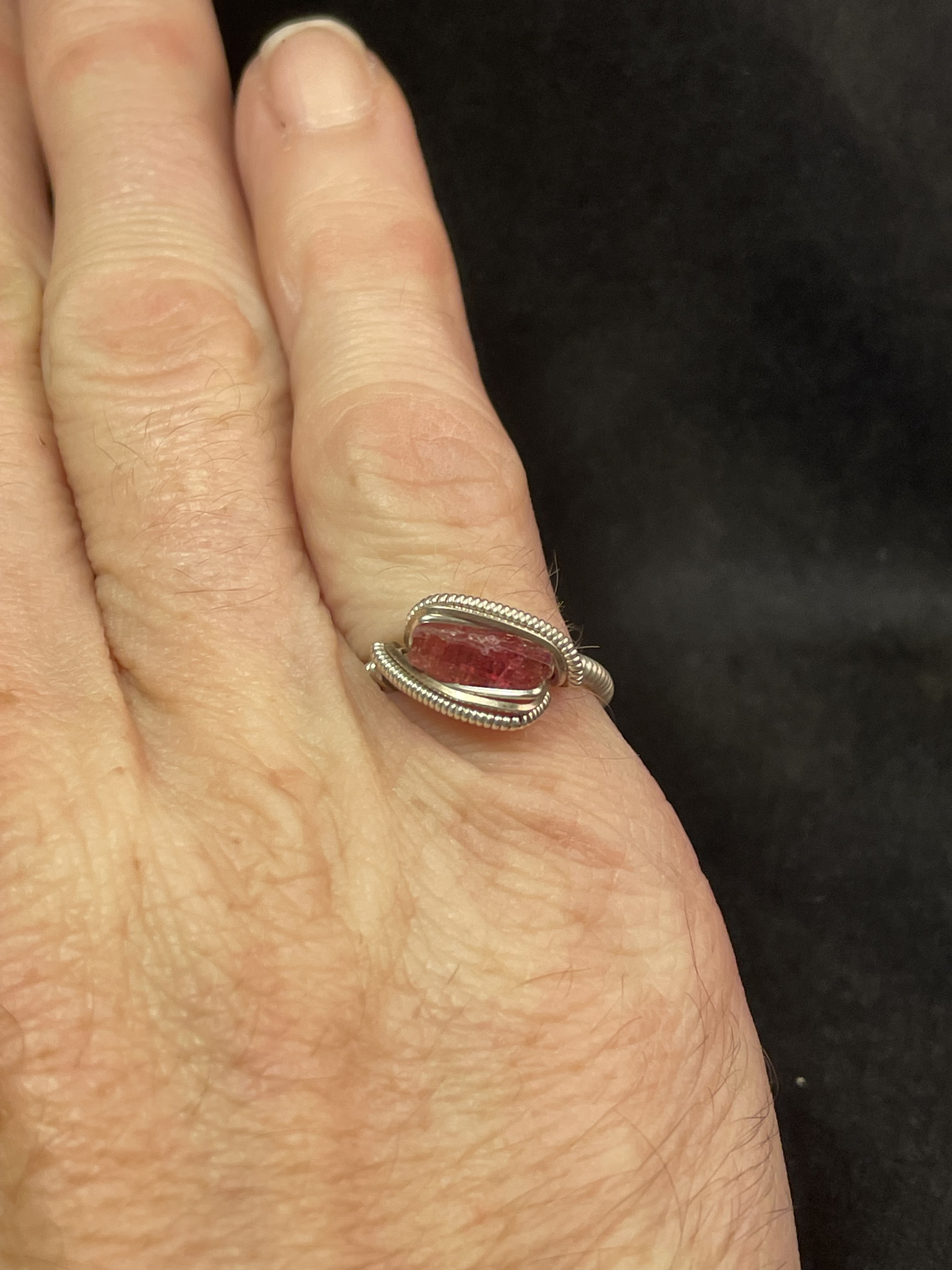 Pink Tourmaline Sterling Silver mini Ring Size 6.5