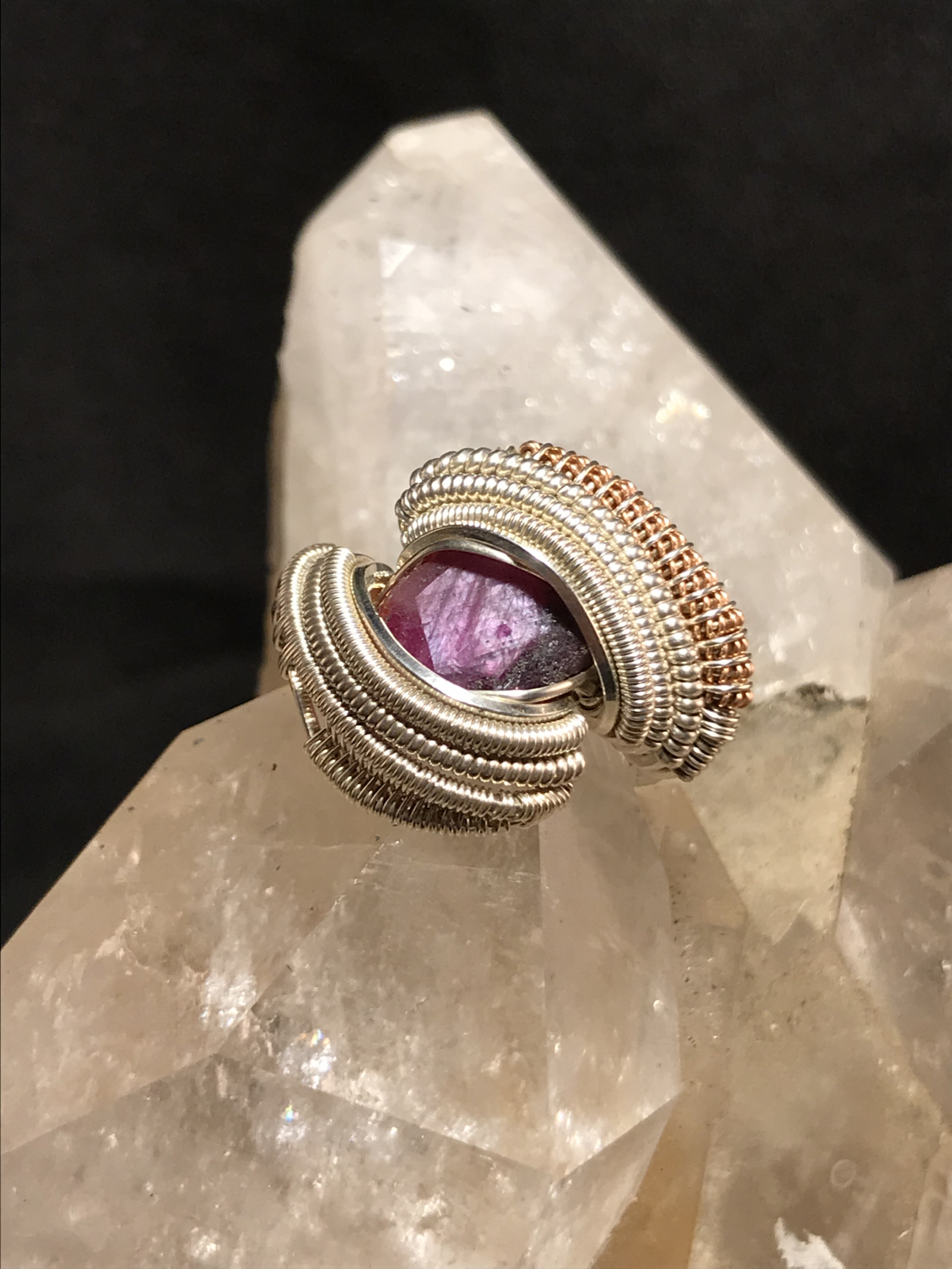Ruby Sterling Silver Ring w/ Rose Gold Size 6.25