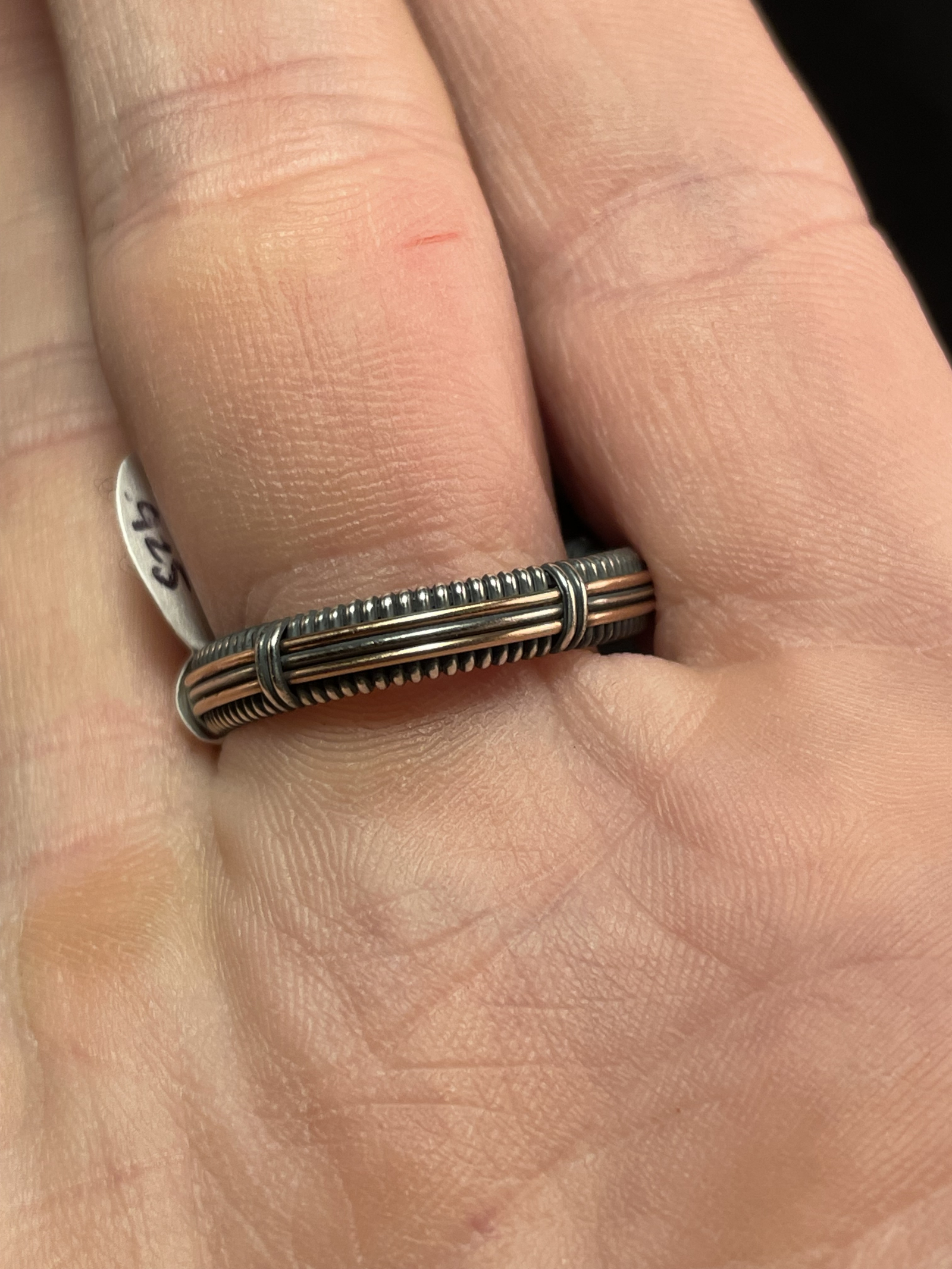 Handcrafted .925 Sterling Silver wire with 14kt gold accents, oxidized to a dark patina finish then polished to shine