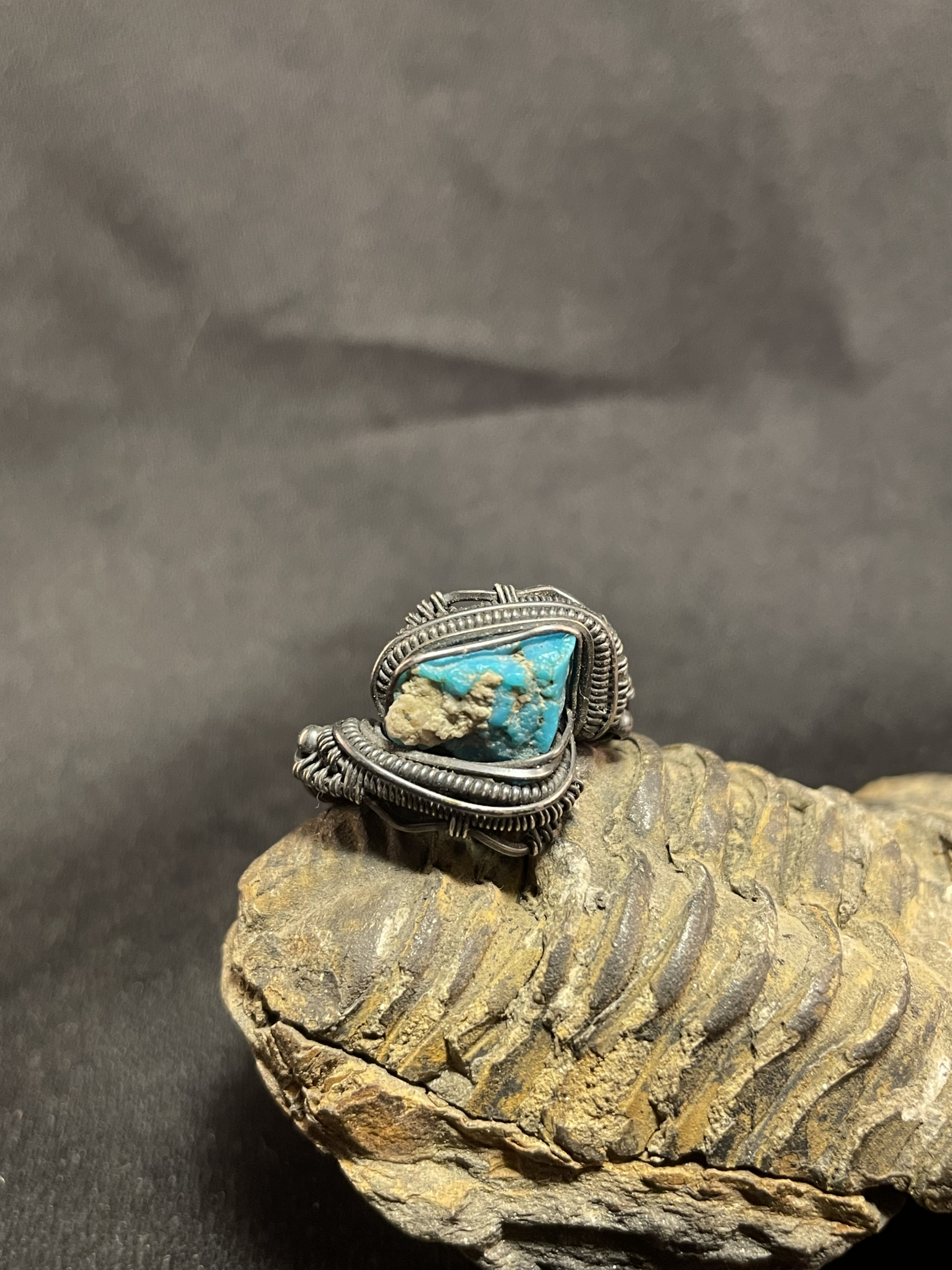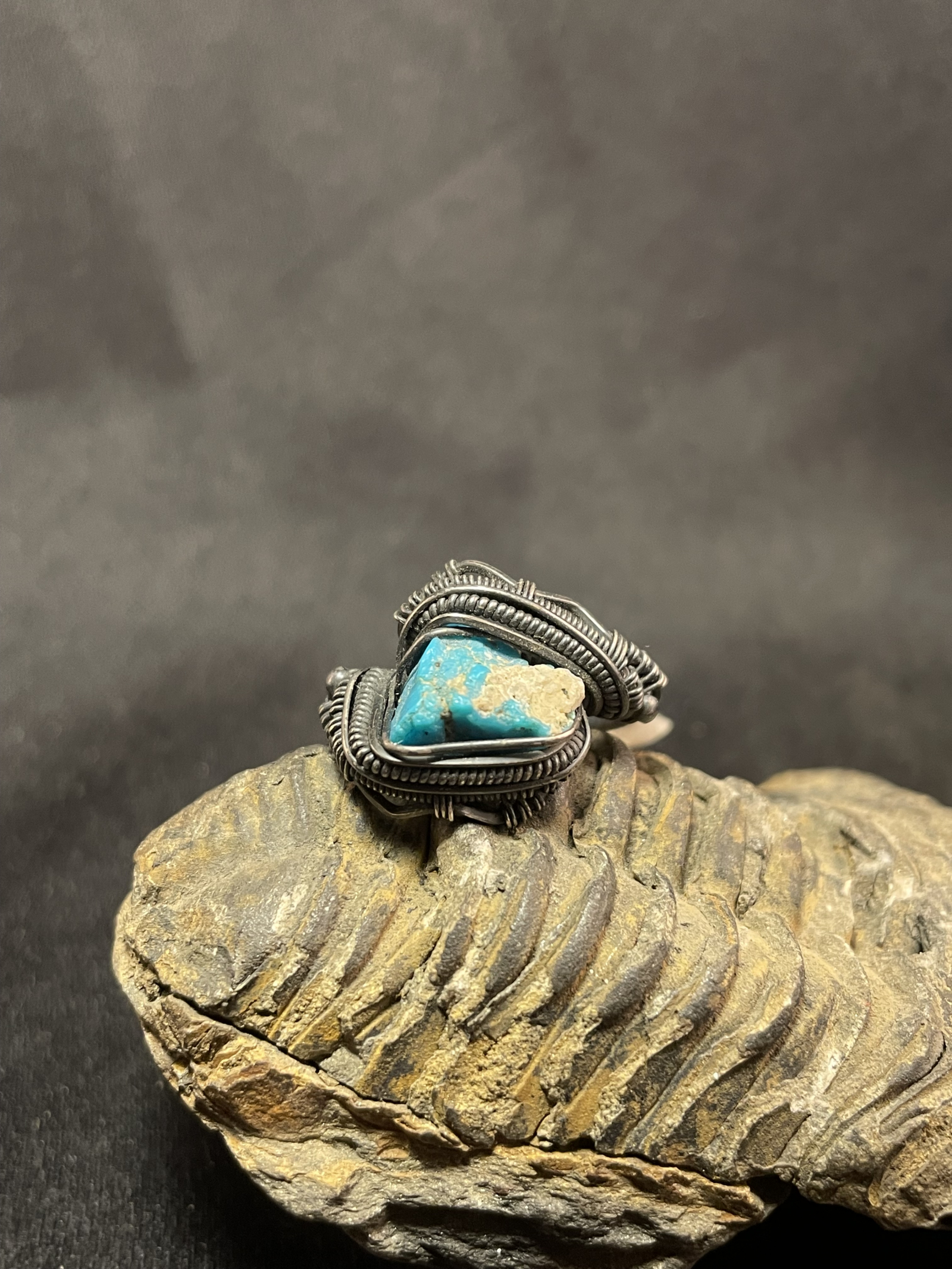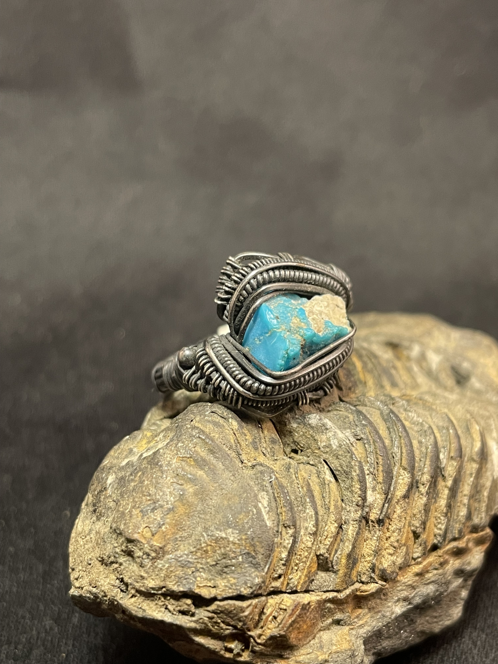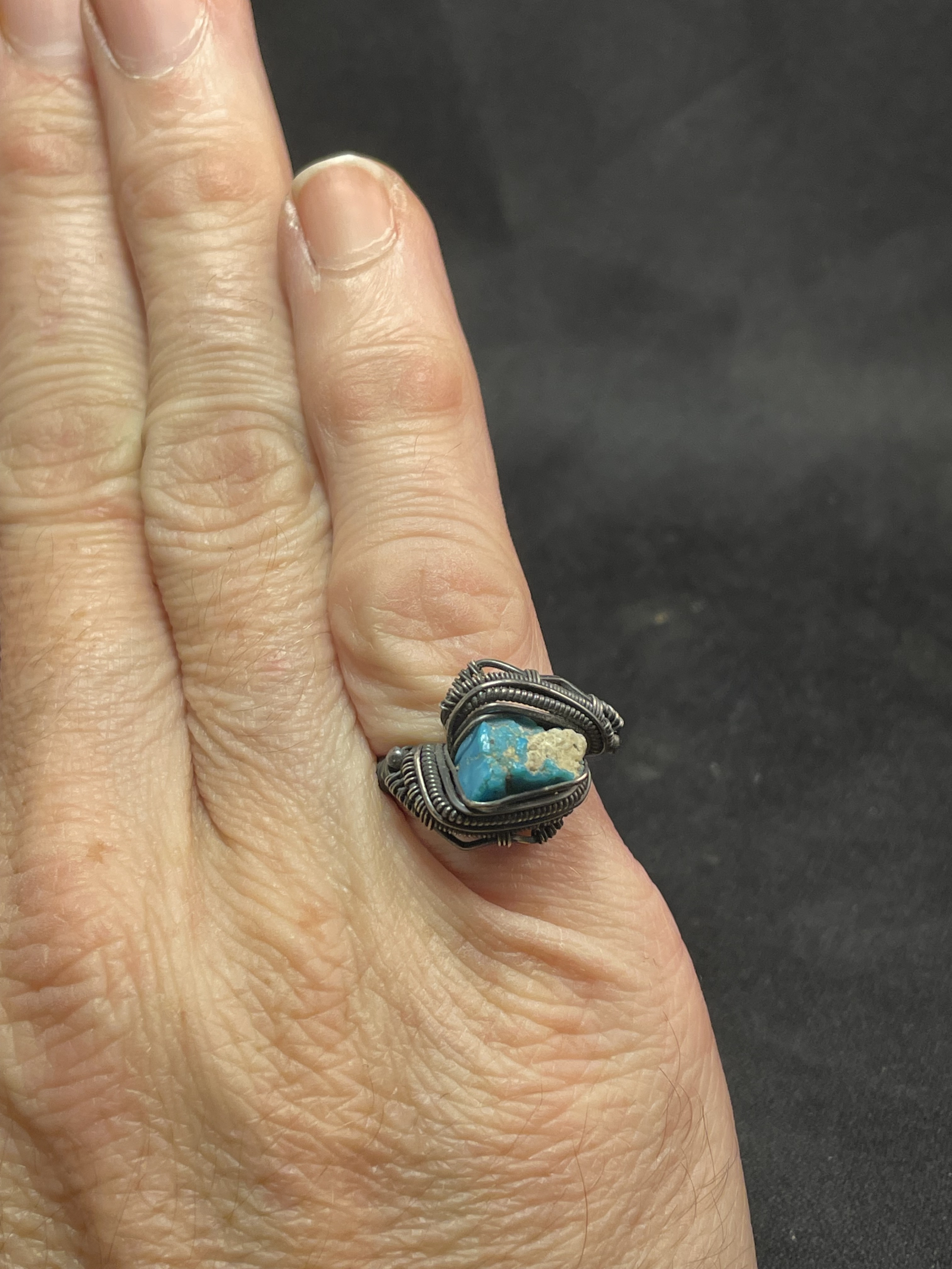 Turquoise Oxidized Sterling Silver Ring Size 7.5